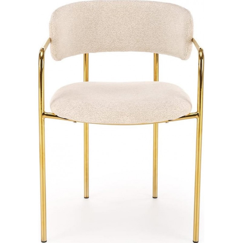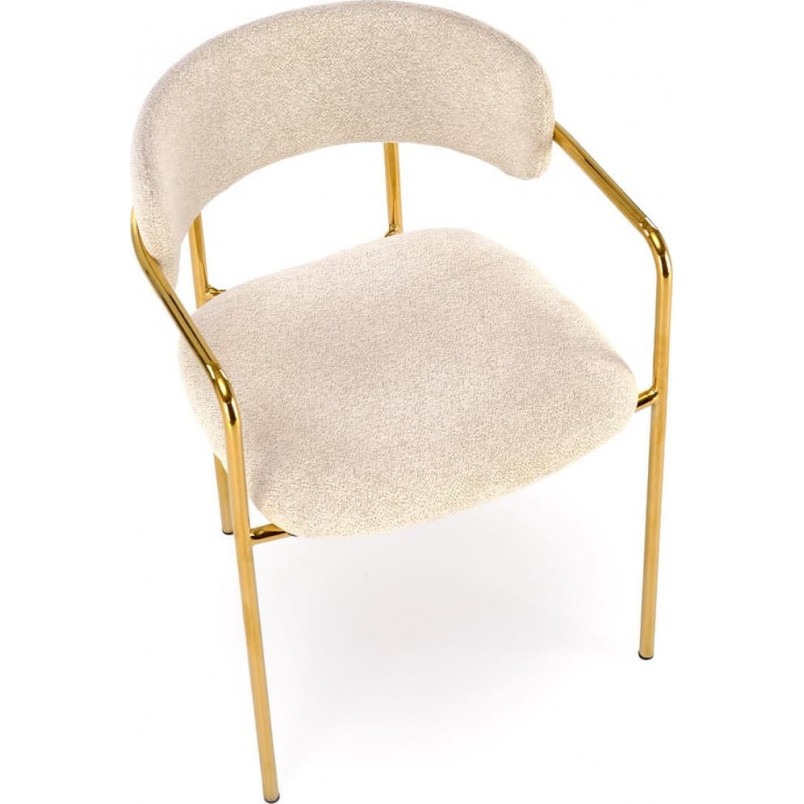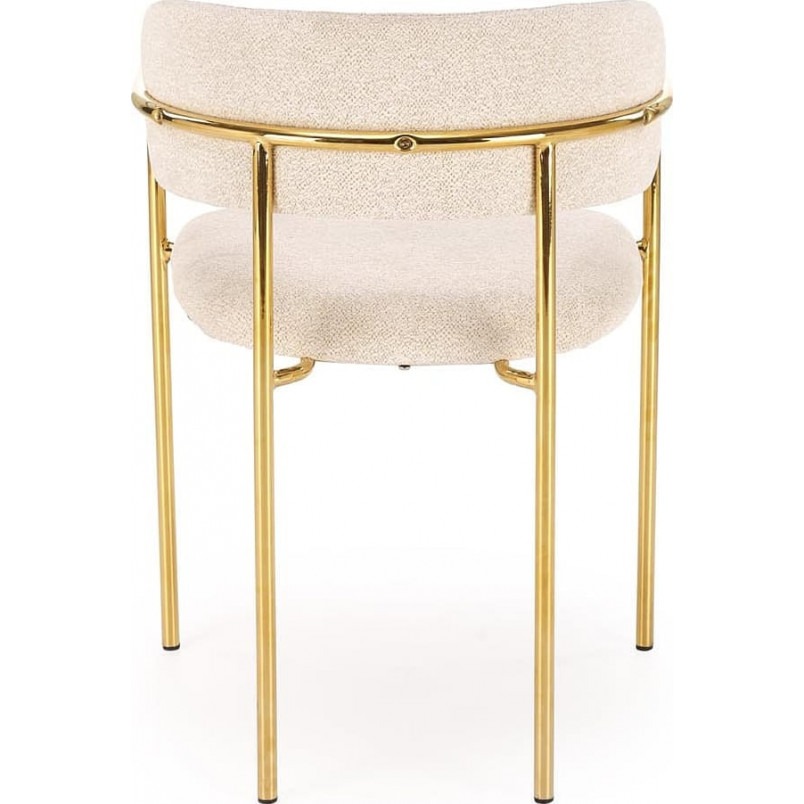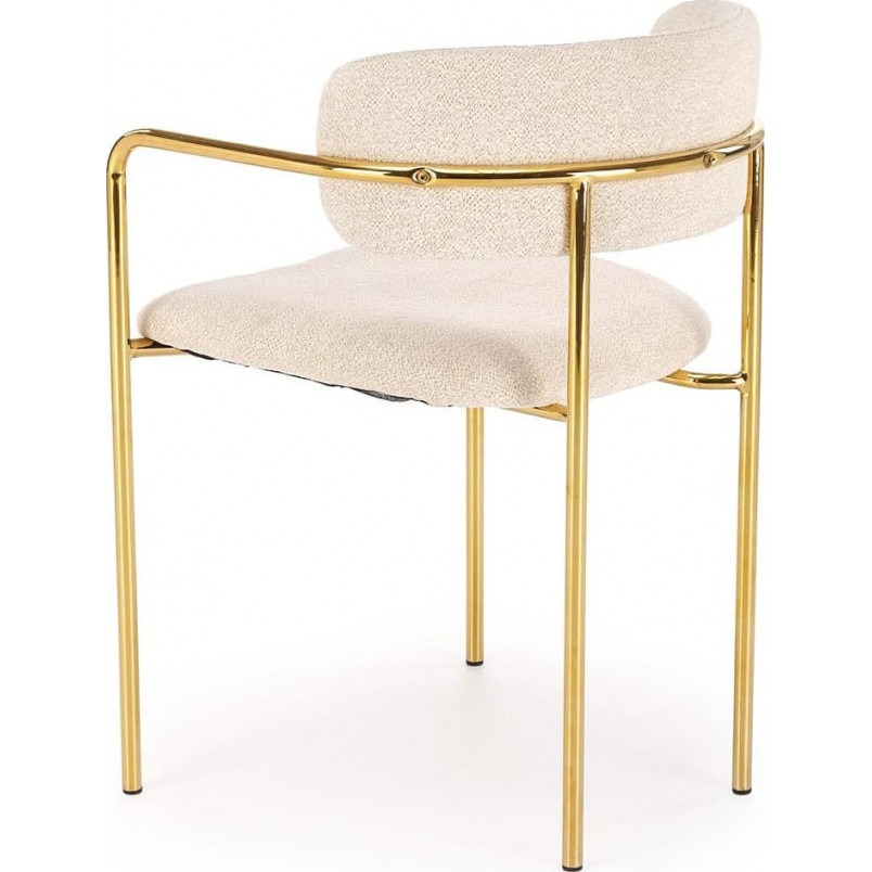 Miękkie, przyjemne w dotyku siedzisko z tkaniny w kolorze kremowym zapewnia maksymalny komfort użytkowania. Neutralny odcień pasuje zarówno do jasnych, jak i ciemniejszych wnętrz, tworząc spójną i harmonijną całość. Całość opiera się na stabilnym stelażu ze stali chromowanej w kolorze złotym, który dodaje meblom blasku i trwałości. Dzięki temu krzesła prezentują się niezwykle elegancko, a jednocześnie pozostają solidne i funkcjonalne przez lata.