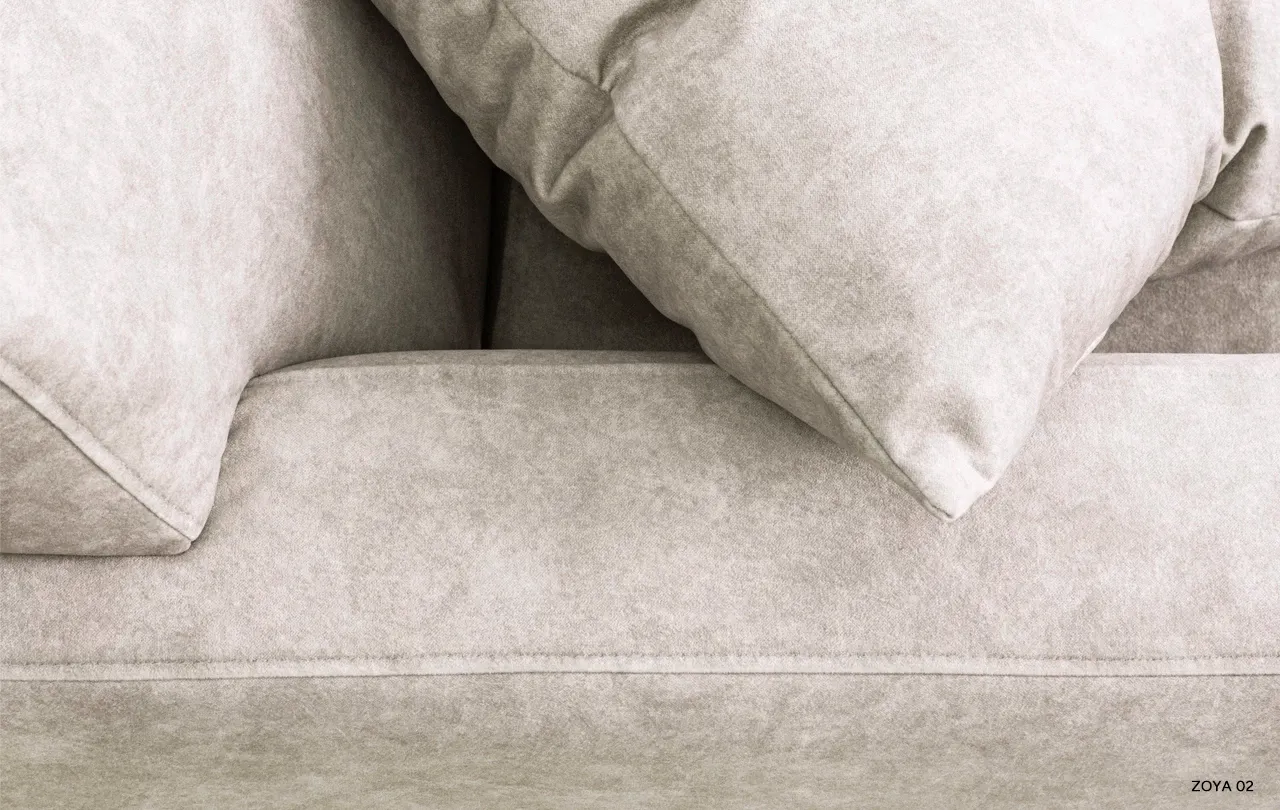 Zoya dostępna jest w szerokiej gamie tkanin – od naturalnych, po nowoczesne materiały łatwe w czyszczeniu. Wszystkie są starannie selekcjonowane, pochodzą od renomowanych dostawców z Włoch, Hiszpanii oraz Polski. Dzięki temu masz pewność, że Twoja sofa nie tylko pięknie wygląda, ale też zachowuje trwałość i świeżość przez długie lata.