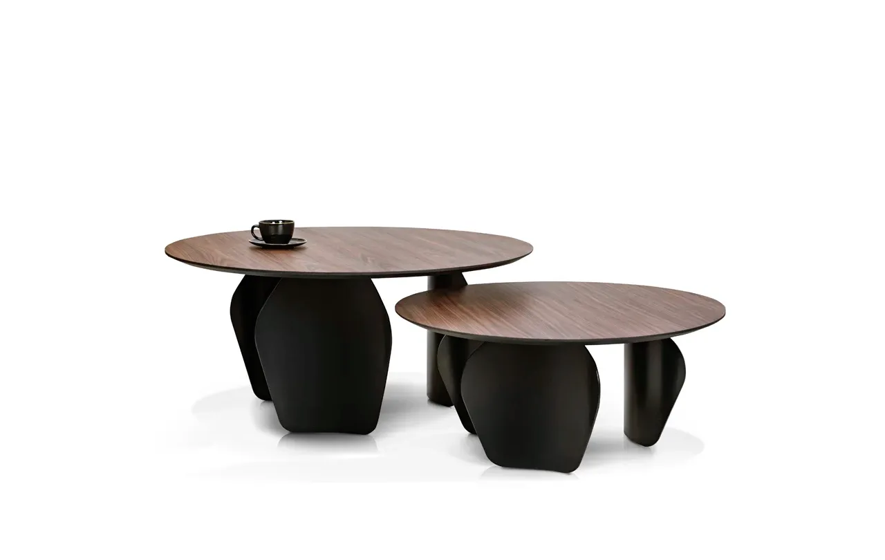 Stolik kawowy Convirio Wood to połączenie natury i nowoczesnego designu. Inspirowany organicznymi kształtami muszli i fal oceanu, zachwyca płynną formą oraz elegancją forniru orzecha amerykańskiego. Stabilna, metalowa podstawa w czarnym macie dodaje mu lekkości i charakteru. To wyjątkowy mebel, który wprowadza do wnętrza harmonię, ciepło i ponadczasowy styl.