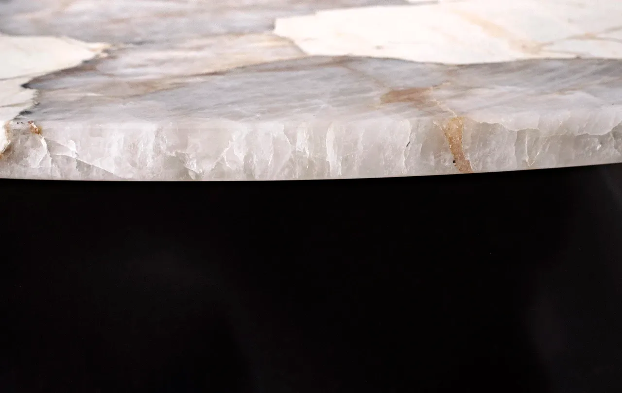 W kolekcji GALET nie ma miejsca na kompromisy. Do produkcji wykorzystano wyłącznie szlachetne, naturalne materiały: kwarcyt Patagonia, granit, marmur oraz drewno. Każdy blat zachwyca niepowtarzalnym rysunkiem kamienia, a subtelne różnice w fakturze sprawiają, że nie istnieją dwa identyczne egzemplarze. Podstawa stolika wykonana została z metalu lakierowanego proszkowo w eleganckim, czarnym macie – solidnym, a zarazem lekkim w odbiorze.
