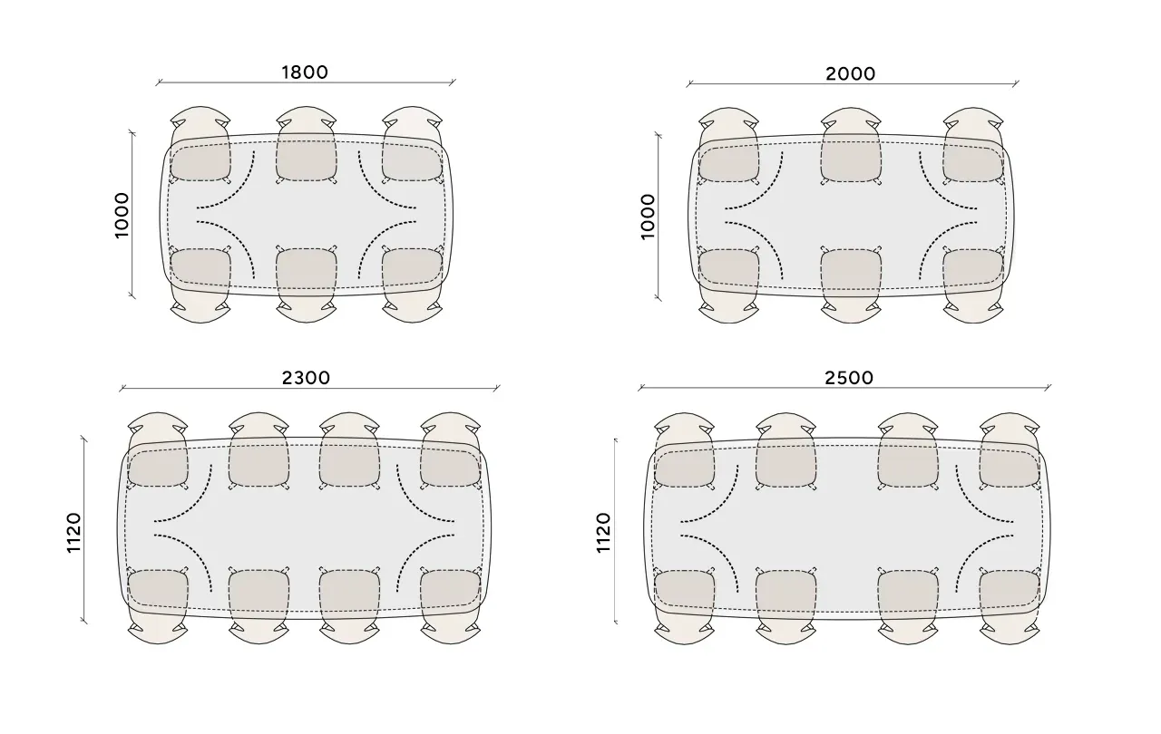 Stół Convirio dostępny jest w kilku wariantach, aby dopasować go do różnych przestrzeni: