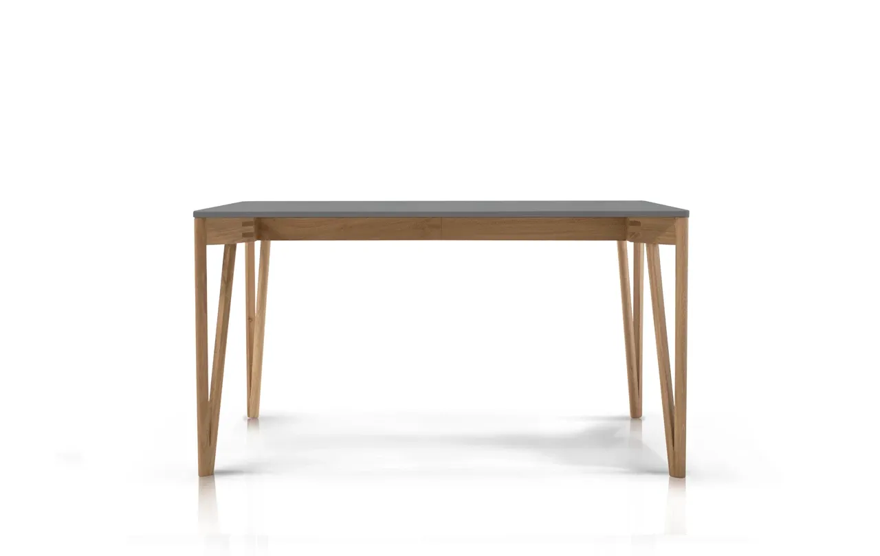 Blat stołu wykonany jest z forniru dębowego, natomiast nogi i podstawa – z litego drewna dębowego. Całość została starannie lakierowana najlepszymi olejami, co podkreśla naturalne usłojenie drewna i zapewnia ochronę na lata. Do wyboru są różne kolory dostępne w ofercie Rosanero, dzięki czemu stół idealnie dopasujesz do swojego wnętrza.