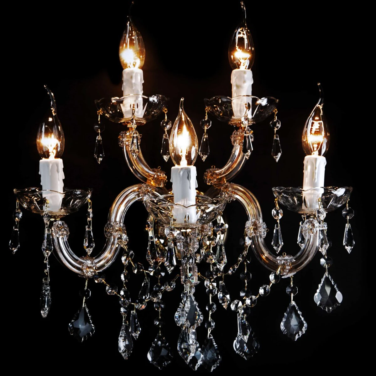 Kryształowy kinkiet naścienny z kolekcji Maria Teresa. Przepiękne uzupełnienie głównego oświetlenie w klasycznych wnętrzach – do salonu, sypialni czy łazienki.