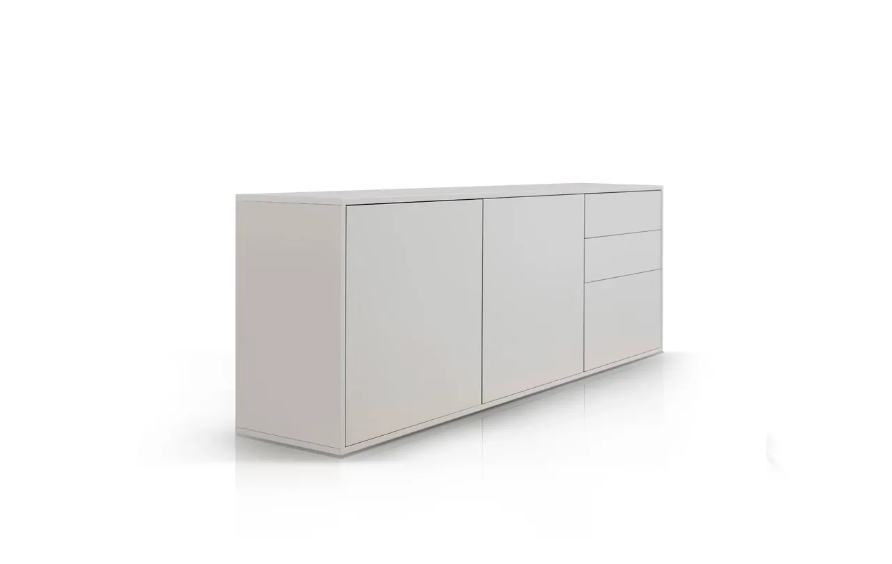 Każda komoda Laila powstaje z lakierowanej płyty MDF, dostępnej w wykończeniu matowym lub na wysoki połysk. Do lakierowania używamy najlepszych włoskich lakierów, a kolor możesz dobrać samodzielnie z pełnej palety RAL, aby mebel idealnie pasował do Twojego wnętrza.