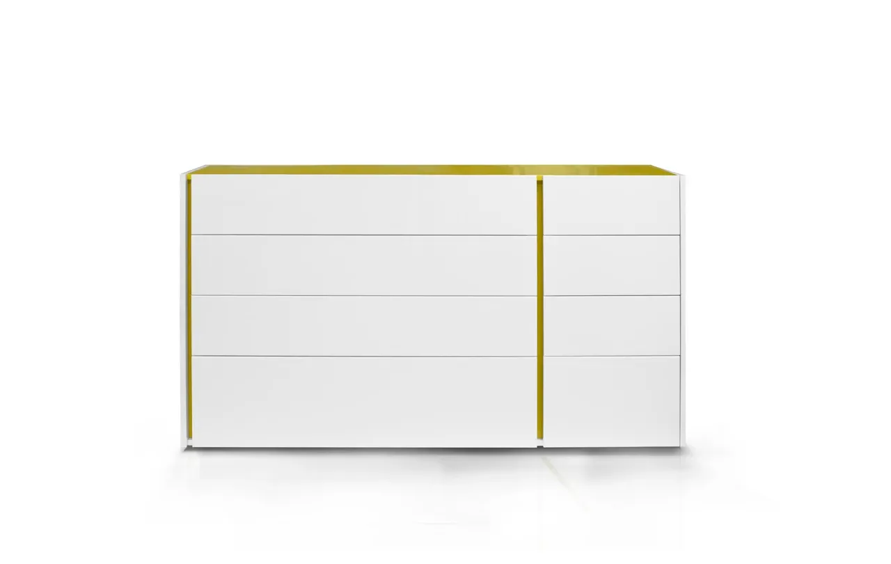 Komoda Paola jest lakierowana najlepszymi włoskimi lakierami, dostępna w szerokiej gamie kolorów z palety RAL. Możesz wybrać zarówno wykończenie na wysoki połysk, które doda wnętrzu blasku, jak i matowe, dla subtelniejszego, bardziej stonowanego efektu.