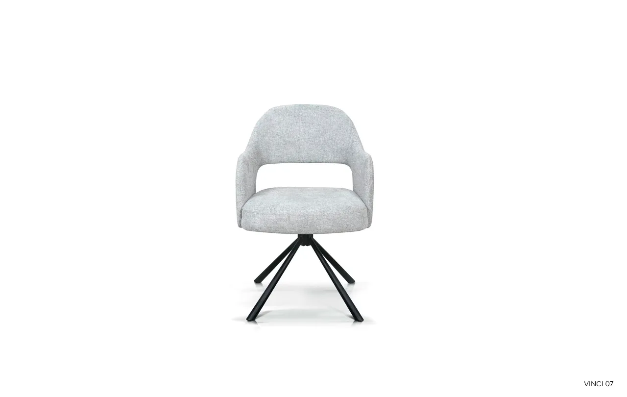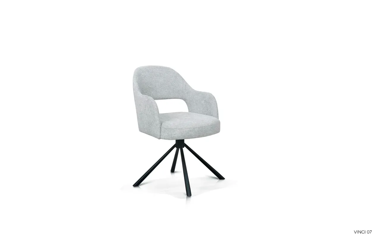 Krzesło AVIO łączy nowoczesny design z wyjątkową wygodą. Miękkie, tapicerowane siedzisko, solidny metalowy stelaż obrotowy i możliwość wyboru tkaniny sprawiają, że idealnie dopasujesz je do swojego wnętrza. To krzesło, które łączy styl, funkcjonalność i komfort w jednym.