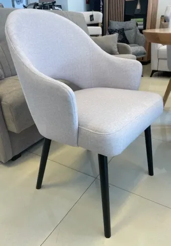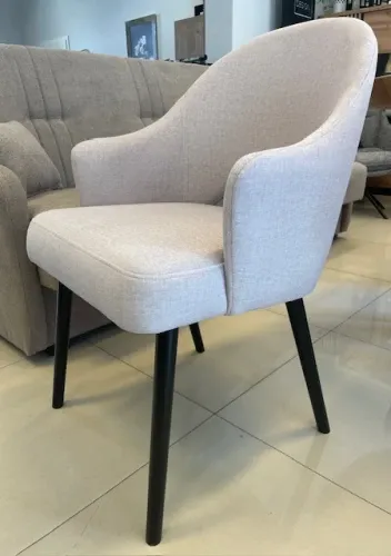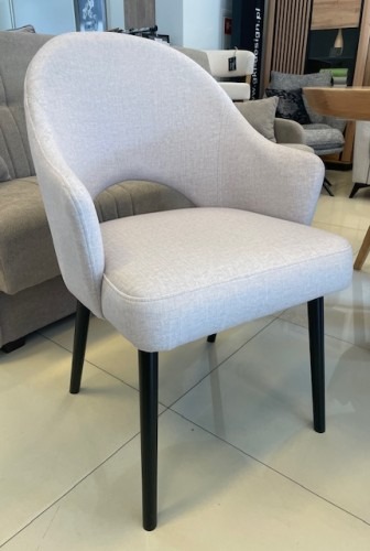 Krzesło tapicerowane Goda Plus to połączenie elegancji i komfortu. Obite tkaniną Maya w ciepłym beżu, z czarnymi, drewnianymi nogami z buku, doskonale pasuje do salonu, jadalni lub kuchni.