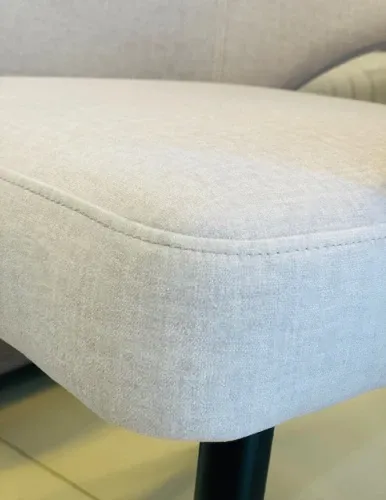Siedzisko i oparcie krzesła obite zostało tkaniną Maya – niezwykle przyjemną w dotyku, trwałą i elegancką. Jej delikatny, beżowy odcień wprowadza do wnętrza ciepło i harmonię, a jednocześnie doskonale komponuje się z innymi kolorami. To tkanina, która nie tylko świetnie wygląda, ale też zachowuje swój wygląd przez długie lata.