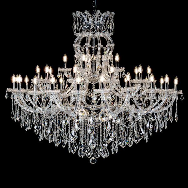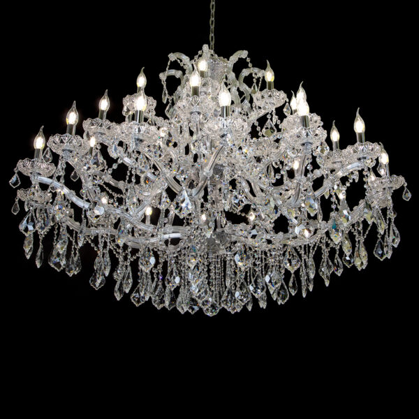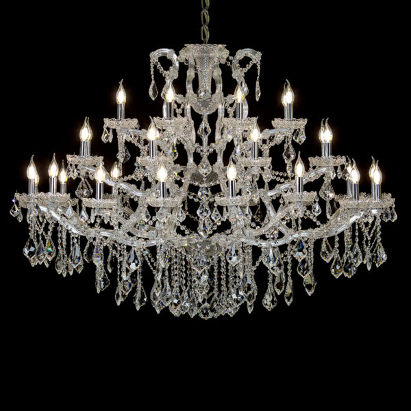 Klasyczne pałacowe żyrandole kryształowe z kolekcji Maria Teresa to doskonała propozycja dla miłośników tradycyjnych, eleganckich wnętrz. Historyczny styl w przepięknej formie, która nadając niebywałego blasku, podkreśli wyjątkowy charakter pomieszczenia. Kolekcja Maria Teresa to czarujące żyrandole wiszące, lampy stojące oraz pasujące do nich kinkiety. Żyrandole Maria Teresa produkowane są w różnych rozmiarach, z różną liczbą punktów świetlnych oraz w różnych wersjach kolorystycznych – tak, aby móc swobodnie dopasować je do każdej, nawet najbardziej wymagającej przestrzeni.