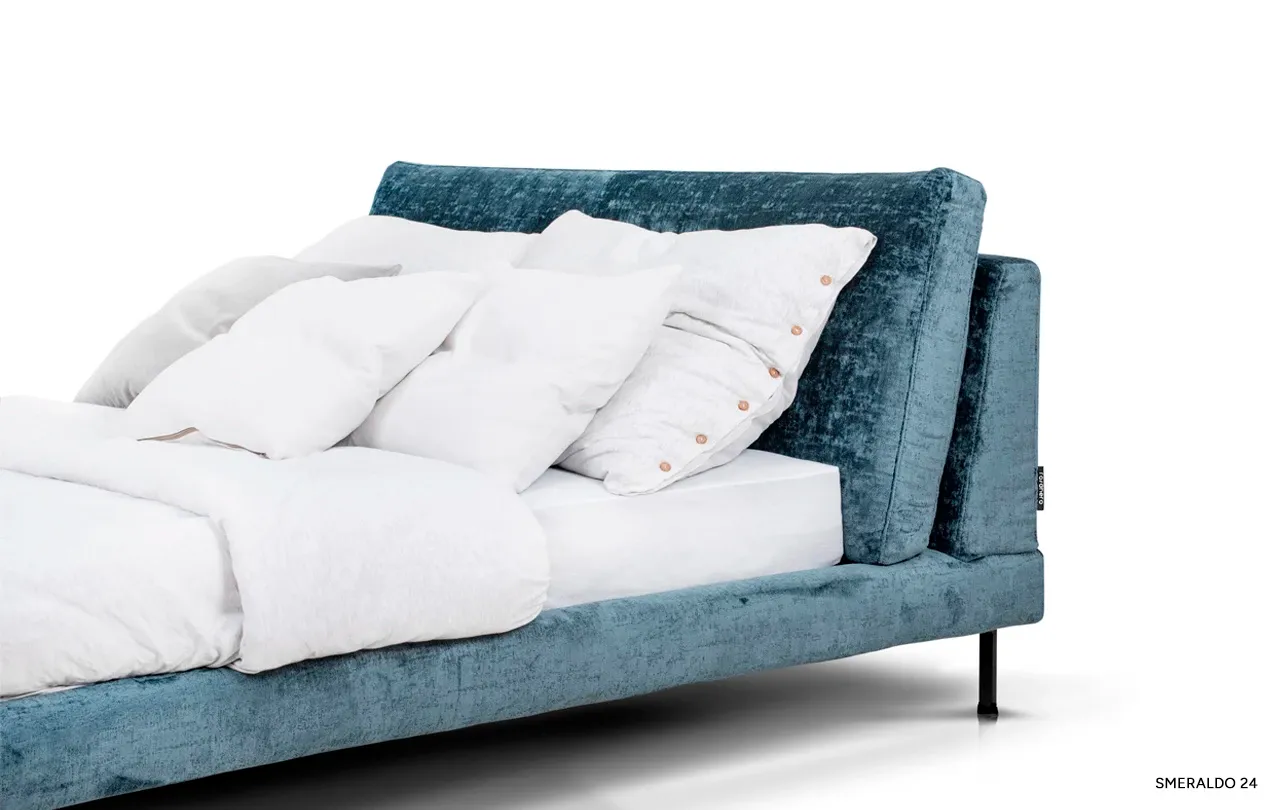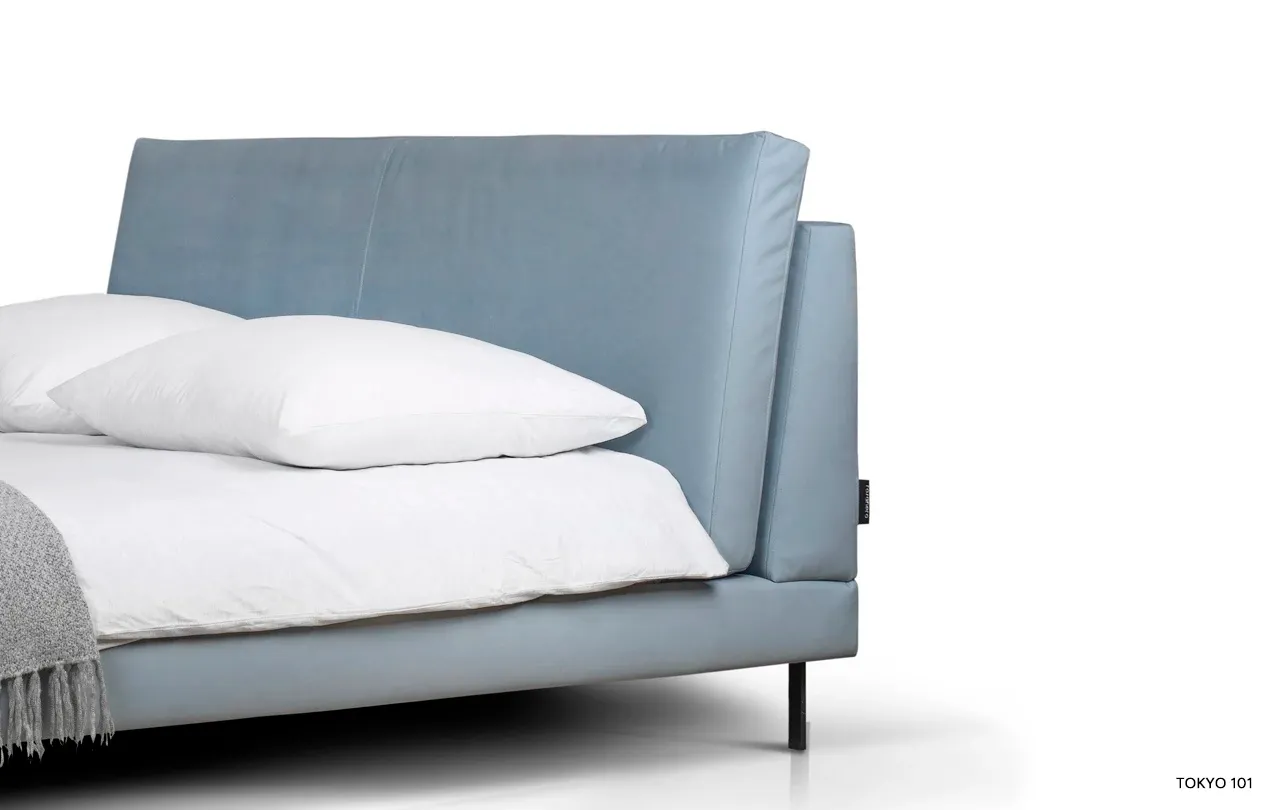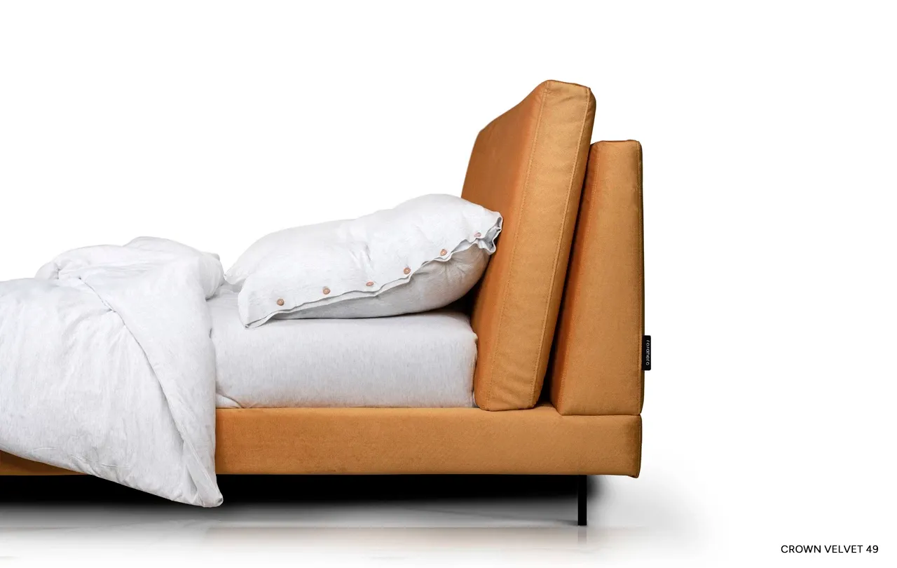 Metalowe nogi o eleganckim kształcie nadają meblowi lekkości i nowoczesnego szyku. Dzięki nim łóżko wygląda stylowo, a jednocześnie pozostaje stabilne i trwałe. Szeroka paleta tkanin – w tym również tych łatwych w czyszczeniu – pozwala stworzyć kompozycję idealnie dopasowaną do Twojego wnętrza. Dla zwolenników naturalnych materiałów dostępne są także tkaniny wysokogatunkowe od renomowanych producentów z Włoch, Hiszpanii i Polski.