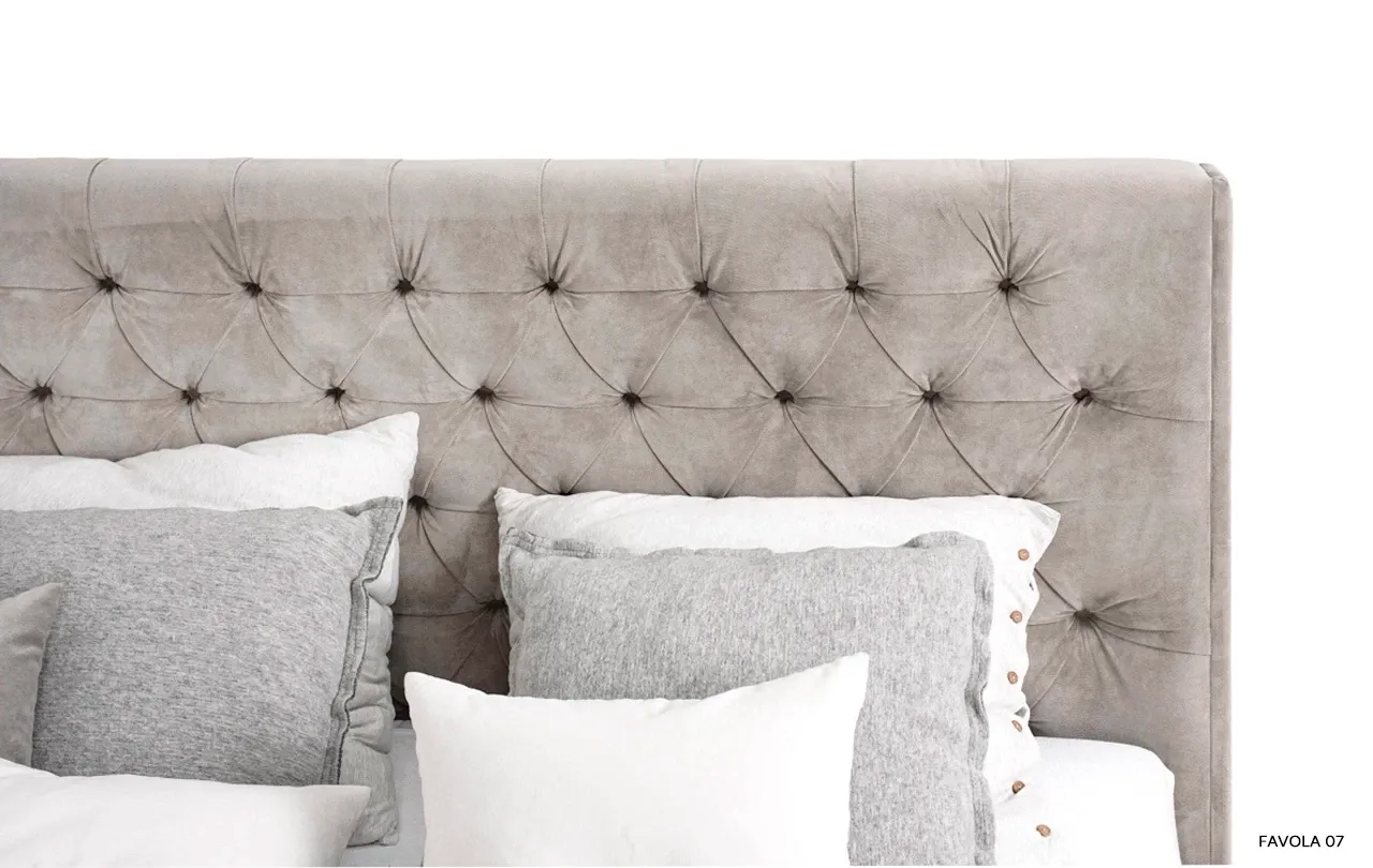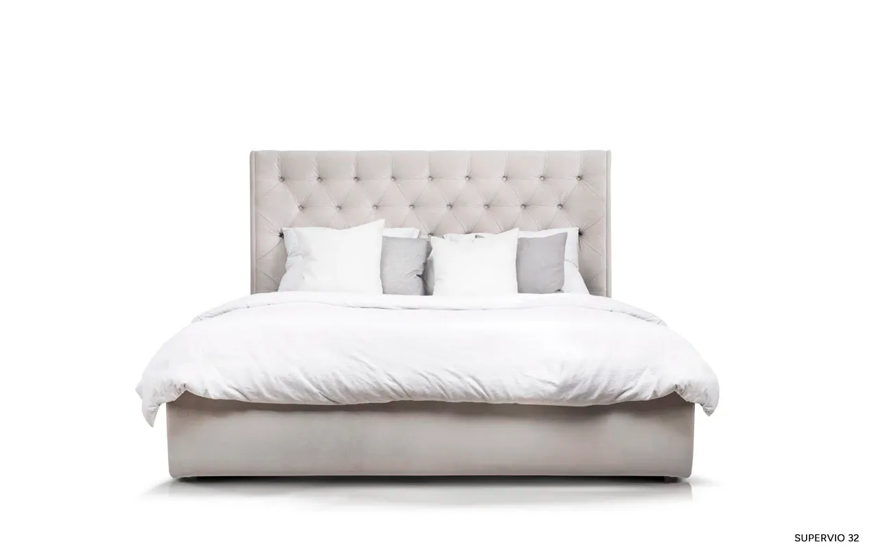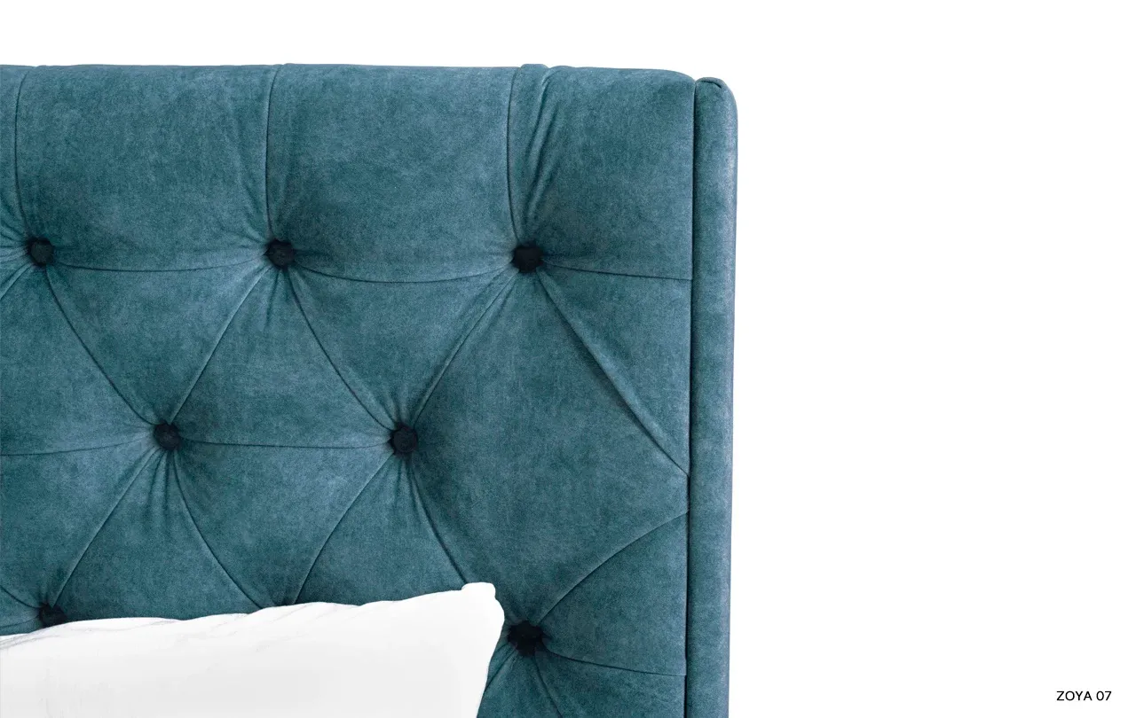 Łóżko Neiva przyciąga spojrzenia już od pierwszego wejrzenia dzięki swojemu wysokiemu, pikowanemu wezgłowiu. Głębokie pikowanie nadaje mu wyjątkowego charakteru i sprawia, że każde wnętrze zyskuje elegancki, designerski akcent. Dodatkowo, boczne panele przykręcone do zagłowia podkreślają jego unikatowy styl, harmonijnie kontrastując z gładko tapicerowaną ramą.