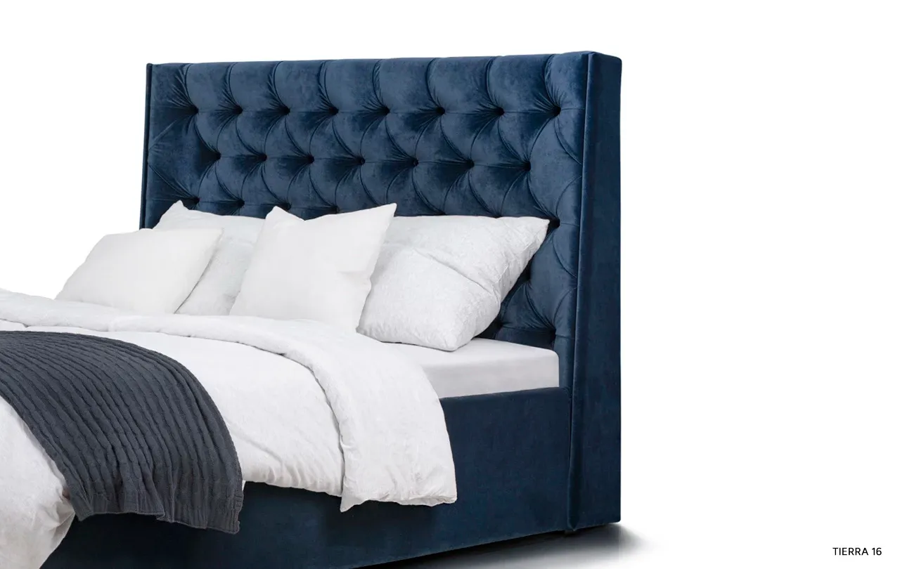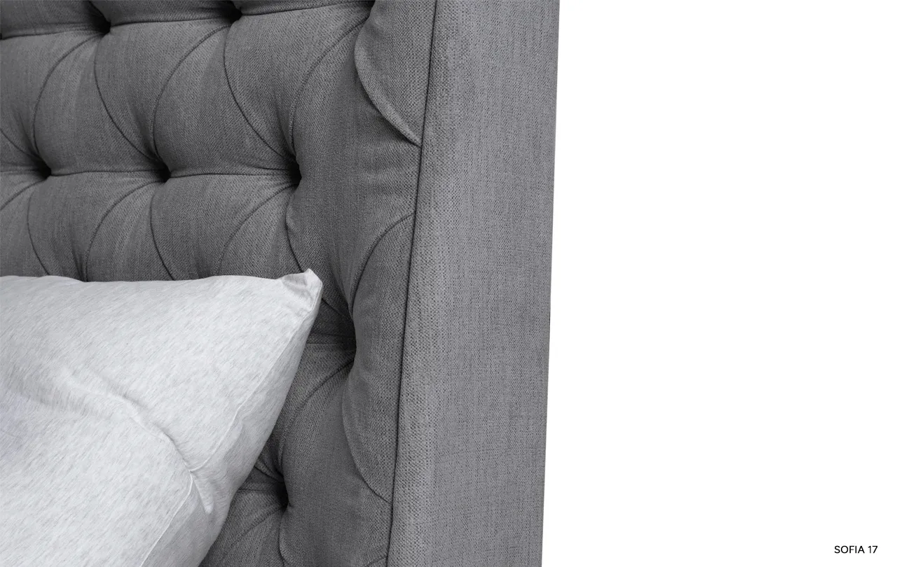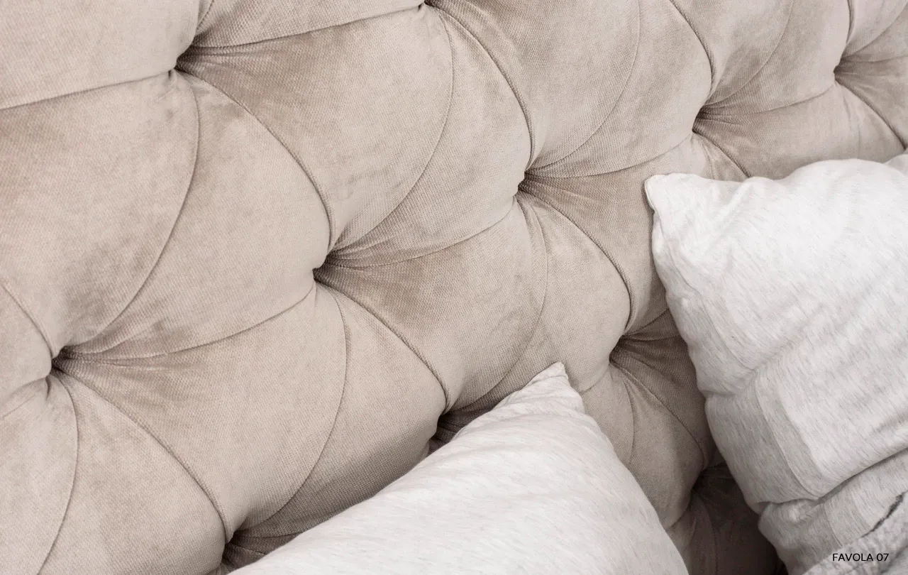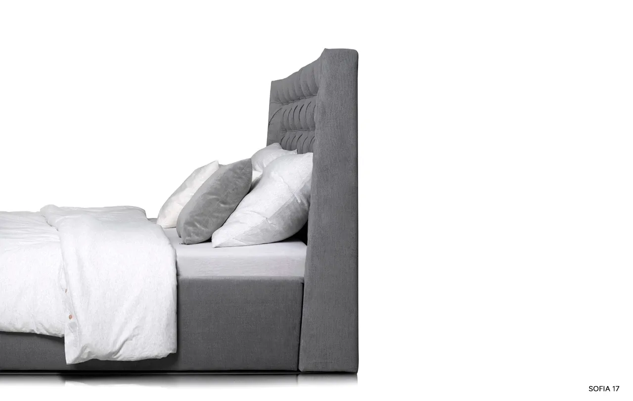 Łóżko Neiva przyciąga spojrzenia już od pierwszego wejrzenia dzięki swojemu wysokiemu, pikowanemu wezgłowiu. Głębokie pikowanie nadaje mu wyjątkowego charakteru i sprawia, że każde wnętrze zyskuje elegancki, designerski akcent. Dodatkowo, boczne panele przykręcone do zagłowia podkreślają jego unikatowy styl, harmonijnie kontrastując z gładko tapicerowaną ramą.