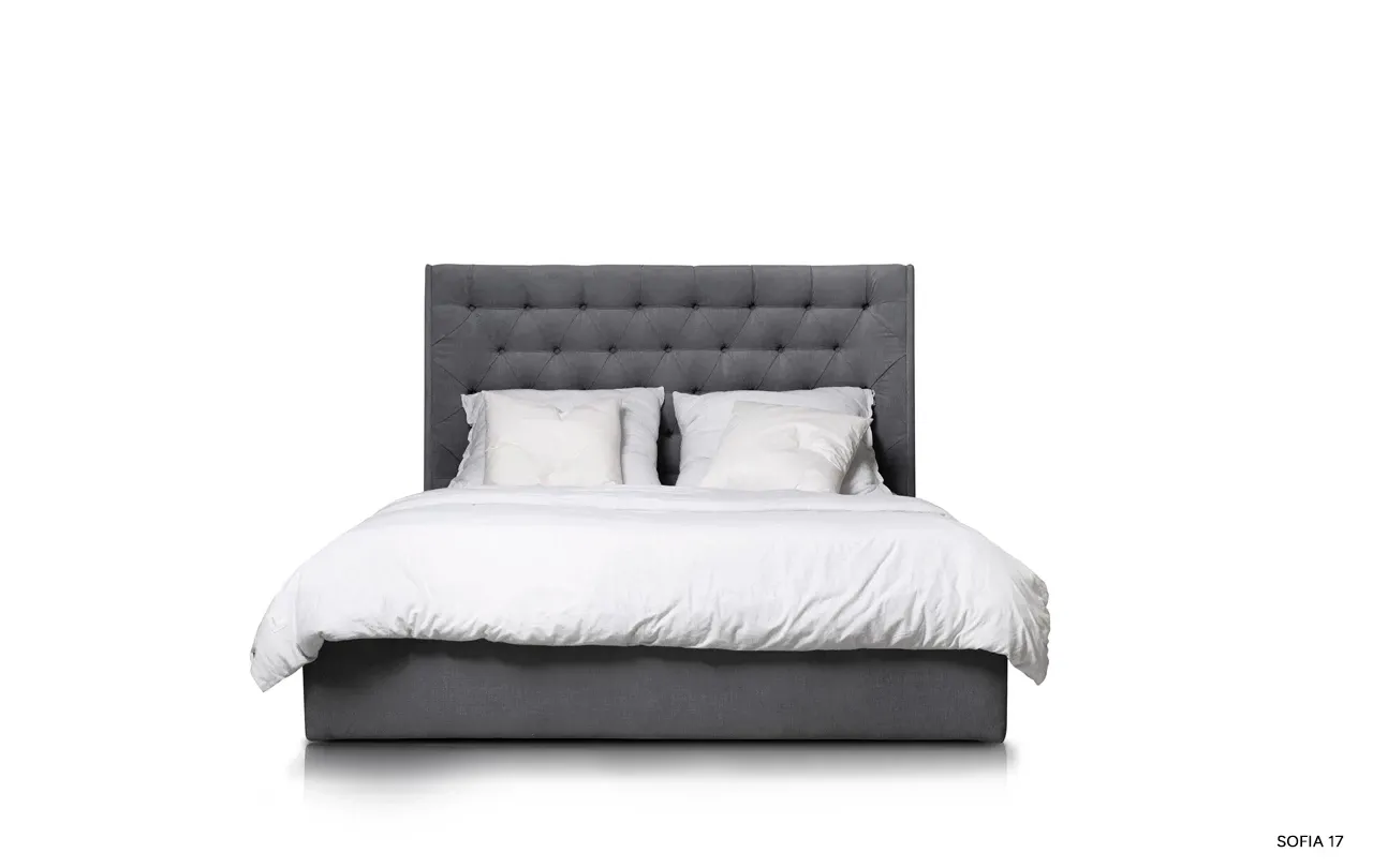 Odkryj łóżko Neiva z wysokim, pikowanym wezgłowiem i eleganckimi bocznymi panelami, które nadają mu wyjątkowego charakteru. Gładko tapicerowana rama z praktycznym pojemnikiem na pościel łączy styl z funkcjonalnością, tworząc idealne miejsce do relaksu i wypoczynku.