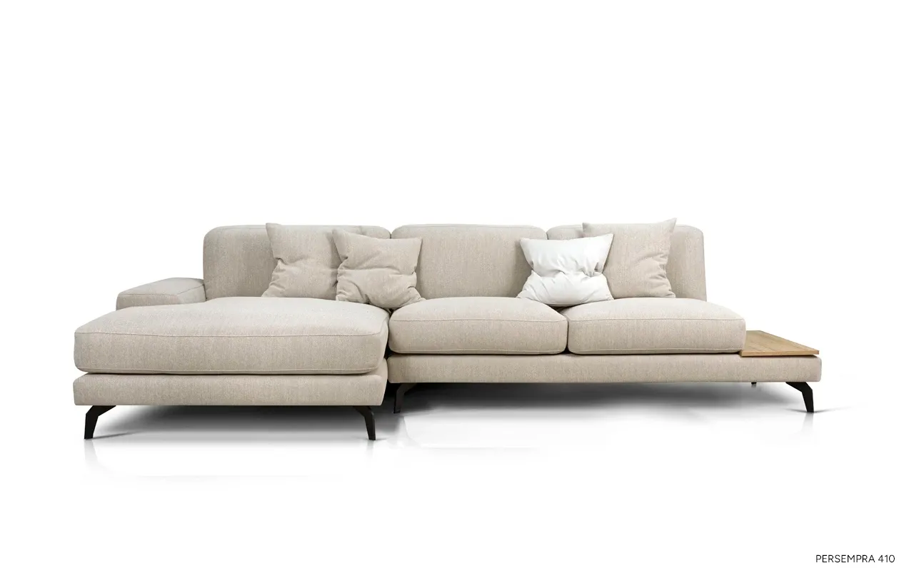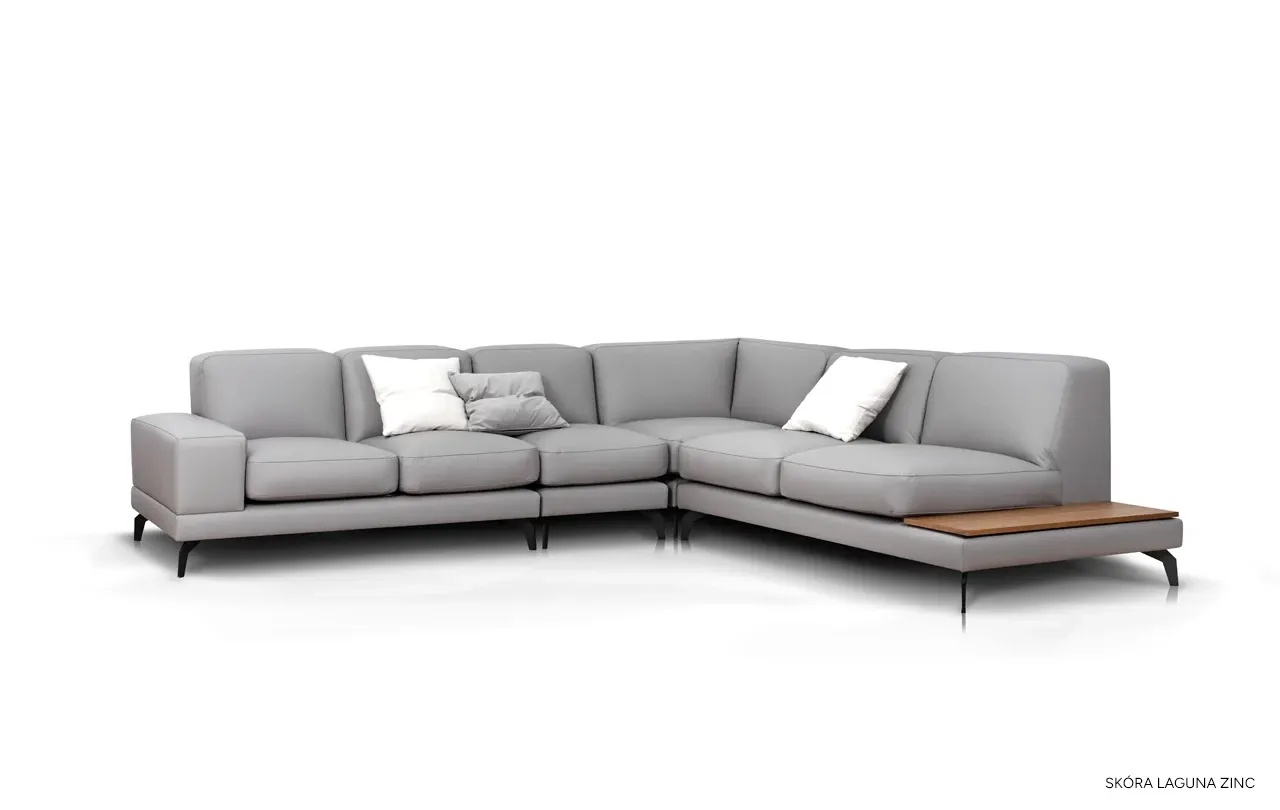 ENJOY to narożnik stworzony dla indywidualistów. Możesz skonfigurować układ i wymiary poszczególnych modułów, dopasowując je do swojego wnętrza i potrzeb. Co więcej, jedna z poduszek może pełnić funkcję praktycznego stolika – idealnego na filiżankę porannej kawy, lampkę wina czy dekoracyjną roślinę. To detal, który zmienia codzienne użytkowanie w czystą przyjemność.