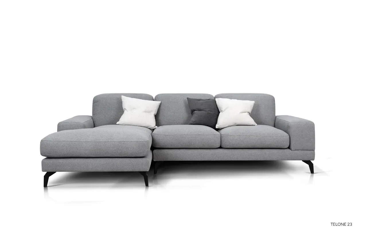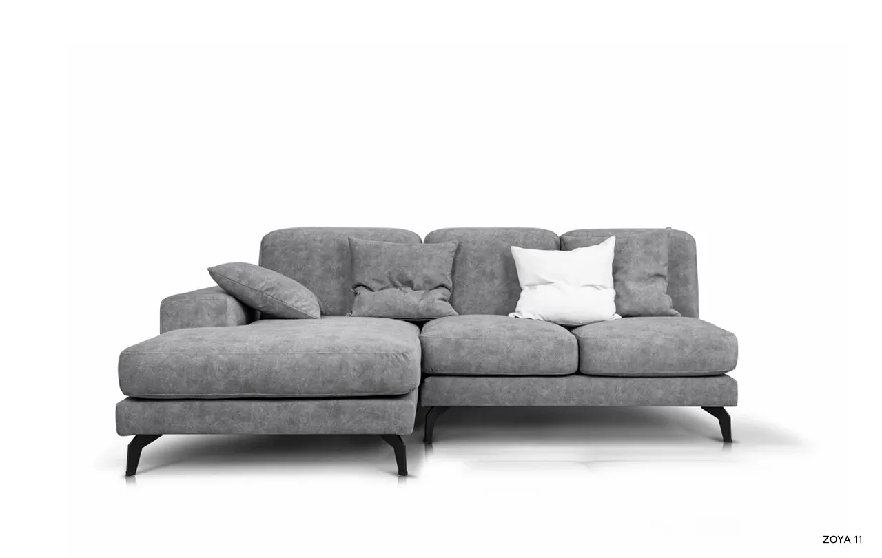 Charakterystyczne metalowe nogi o wygiętej linii dodają narożnikowi lekkości i nowoczesnego charakteru. Dzięki nim ENJOY nie tylko wygląda wyjątkowo, ale też wprowadza do wnętrza nutę loftowej elegancji. Całość dopełnia szeroki wybór tkanin – od naturalnych, po te łatwe w czyszczeniu, idealne do domu z dziećmi czy zwierzętami. Możesz wybierać spośród dziesiątek odcieni i faktur, tworząc mebel, który stanie się sercem Twojego salonu.
