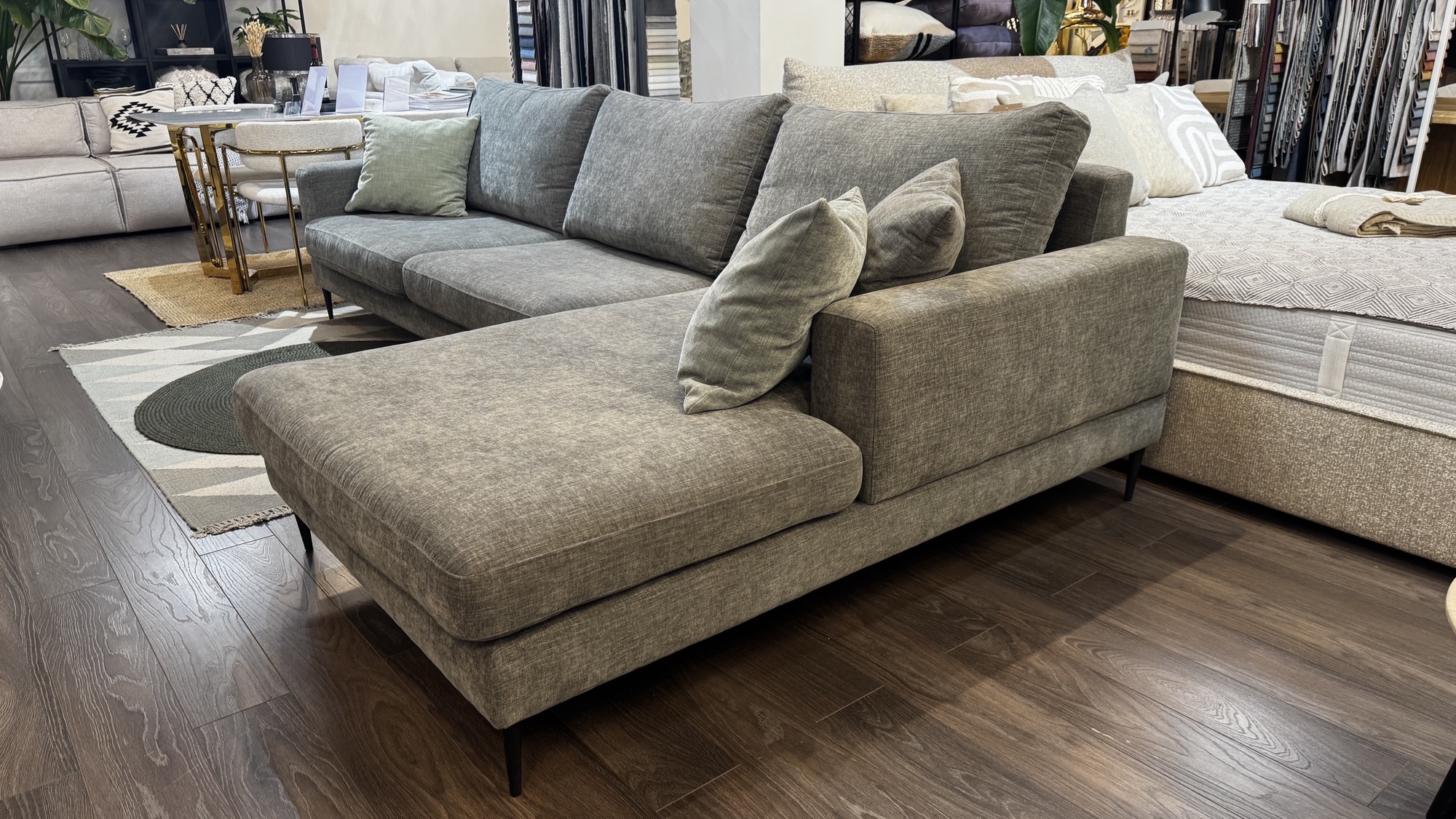 Narożnik DEXTER to propozycja dla osób, które cenią równowagę między elegancją a funkcjonalnością. To mebel, który łączy w sobie kubiczne, szerokie poduszki siedziska z subtelną, nowoczesną podstawą, dzięki czemu cała bryła wygląda lekko i świeżo. Starannie poprowadzone proste szwy i minimalistyczna linia podkreślają jego współczesny charakter, a jednocześnie pozwalają mu doskonale odnaleźć się zarówno we wnętrzu nowoczesnym, jak i bardziej klasycznym.