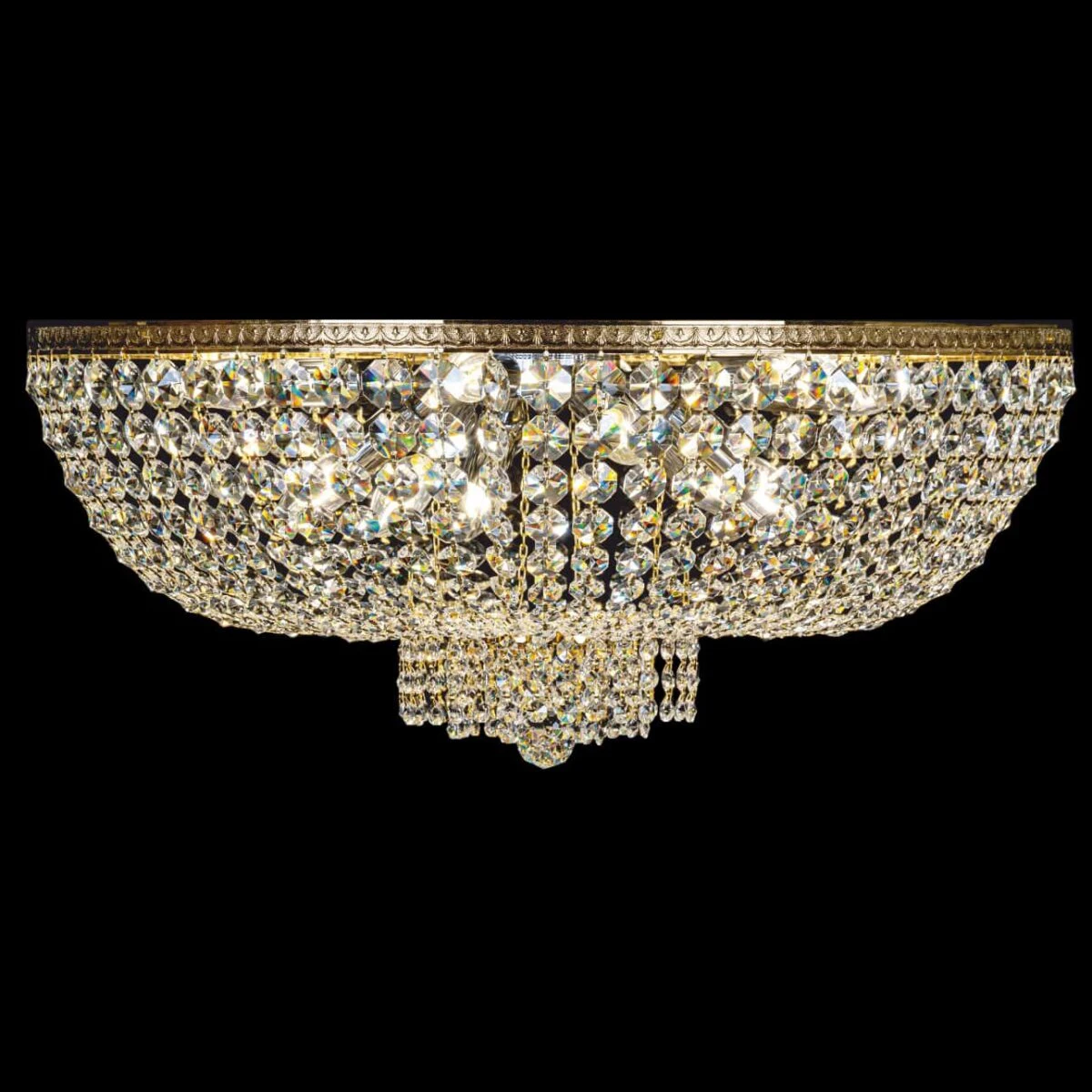 Klasyczne żyrandole typu Plafon doskonale sprawdzą się w niskich pomieszczeniach. Inspiracje dla tradycyjnej formy lamp Plafon czerpaliśmy z tradycyjnych płaskorzeźb i sztukaterii, które miały swój rozkwit w epoce renesansu i baroku. Kryształowe lampy z kolekcji Plafon produkujemy w różnych wielkościach, kształtach i z różnymi ozdobami (talerzyk, wisiorek). Oprócz lamp sufitowych dostępne są również kinkiety z tej samej kolekcji.