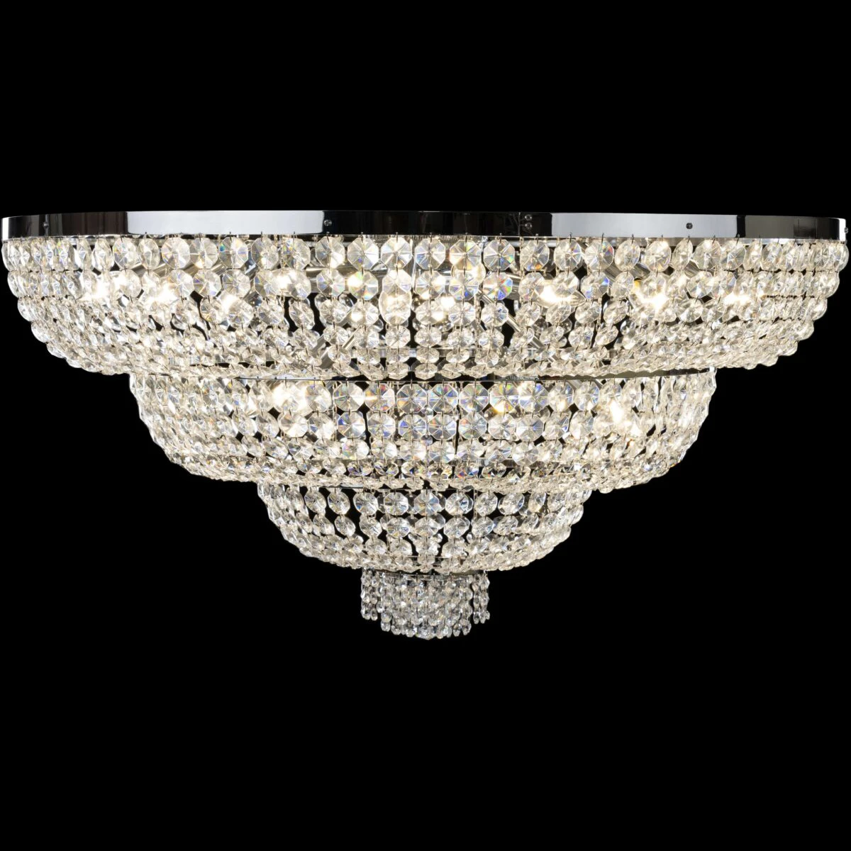 Klasyczne żyrandole typu Plafon doskonale sprawdzą się w niskich pomieszczeniach. Inspiracje dla tradycyjnej formy lamp Plafon czerpaliśmy z tradycyjnych płaskorzeźb i sztukaterii, które miały swój rozkwit w epoce renesansu i baroku. Kryształowe lampy z kolekcji Plafon produkujemy w różnych wielkościach, kształtach i z różnymi ozdobami (talerzyk, wisiorek). Oprócz lamp sufitowych dostępne są również kinkiety z tej samej kolekcji.