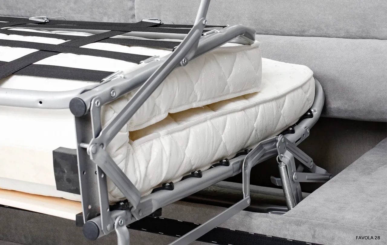 Dla miłośników funkcjonalnych rozwiązań przygotowano również opcję rozkładania z systemem sedaflex, tworząc wygodną powierzchnię spania o wymiarach 1330 × 1885 mm. Materac o grubości 80 mm sprawia, że nocny odpoczynek jest równie przyjemny, co popołudniowa drzemka.