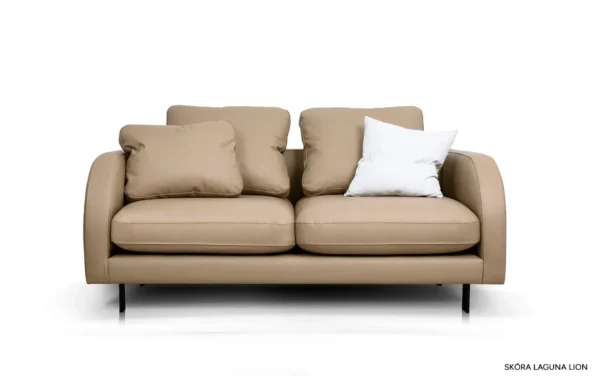 Lekka wizualnie bryła idealnie wpisuje się w obecne trendy wnętrzarskie, stanowiąc harmonijne połączenie minimalizmu i wygody. Komfortowa sofa zapewnia komfortowy odpoczynek nawet dla dwóch osób, przy zachowaniu kompaktowych wymiarów mebla.