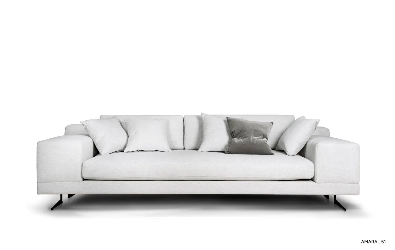Metalowe, smukłe nogi nadają sofie lekkości, a jednocześnie wprowadzają nutę industrialnego szyku. Całość prezentuje się niezwykle harmonijnie – z jednej strony nowoczesna, z drugiej przytulna i zapraszająca do odpoczynku.
