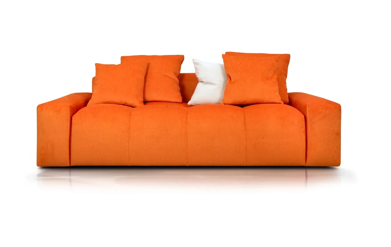Tufti wyróżnia się harmonijnym oparciem, złożonym z dużych, sprężystych poduch, które dosłownie otulają ciało, zapewniając uczucie lekkości i głębokiego odprężenia. To sofa, która idealnie odnajdzie się zarówno w przestronnych salonach, jak i kameralnych mieszkaniach – nie przytłacza, a subtelnie dopełnia aranżację, stając się jej charakterystycznym akcentem.