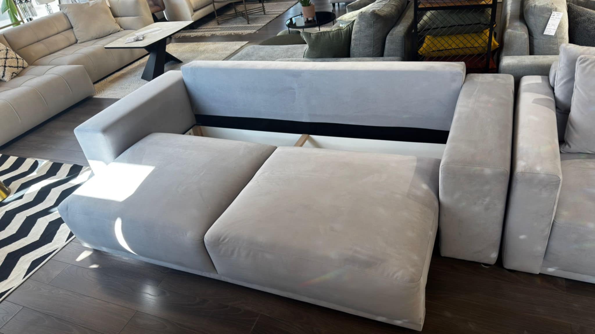 Dodatkowym atutem jest pojemny schowek na pościel. Bez problemu zmieścisz w nim kołdry, poduszki czy dodatkowe koce, zachowując porządek i estetykę w salonie.