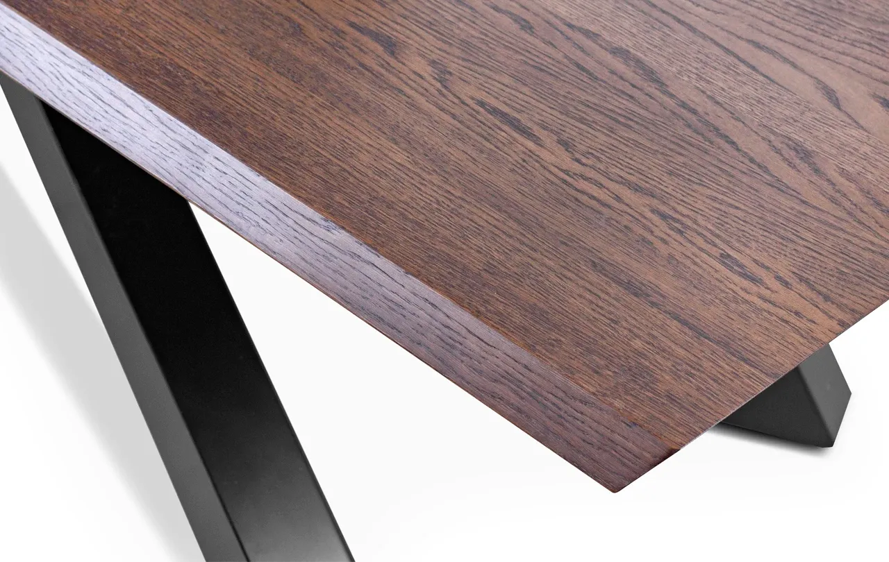 Stół Tame to połączenie naturalnego drewna dębowego i wytrzymałego metalu. Stabilny, elegancki i ponadczasowy – idealny na rodzinne spotkania i codzienne użytkowanie.
