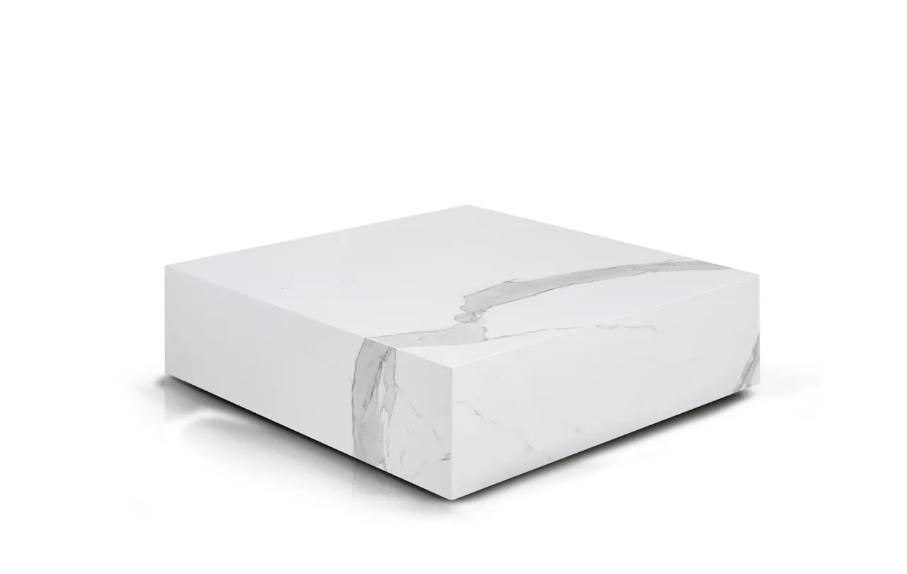 Jeśli szukasz mebla, który podkreśli charakter Twojego wnętrza, a przy tym będzie funkcjonalny, odporny i piękny przez długie lata, stolik kawowy Amaral ze spieku kwarcowego Calacatta Gold to wybór, którego nie pożałujesz.