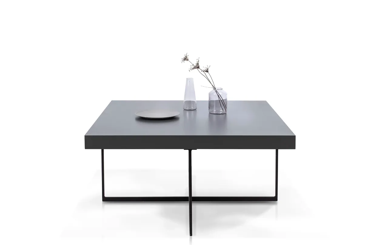 Podstawę stolika tworzy metalowa konstrukcja lakierowana proszkowo na elegancki czarny mat. To rozwiązanie nie tylko estetyczne, ale i praktyczne – odporne na uszkodzenia, stabilne i wyjątkowo trwałe. Subtelna rama nadaje meblowi wrażenie lekkości, jednocześnie podkreślając jego geometryczny, ponadczasowy charakter.