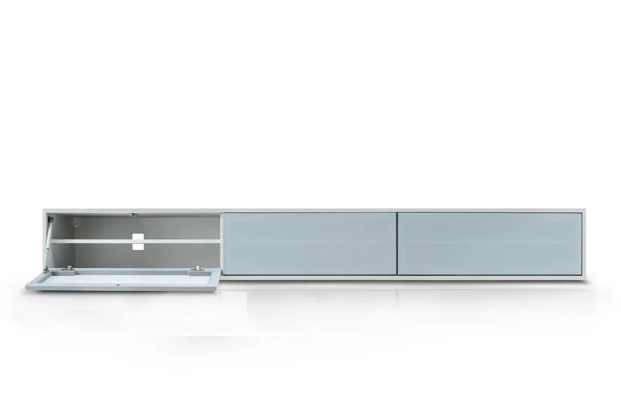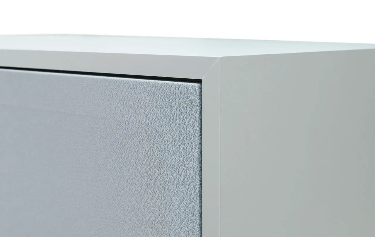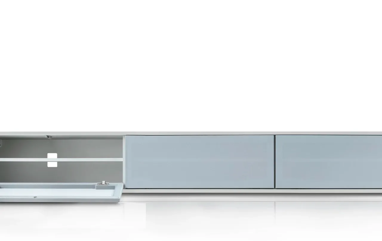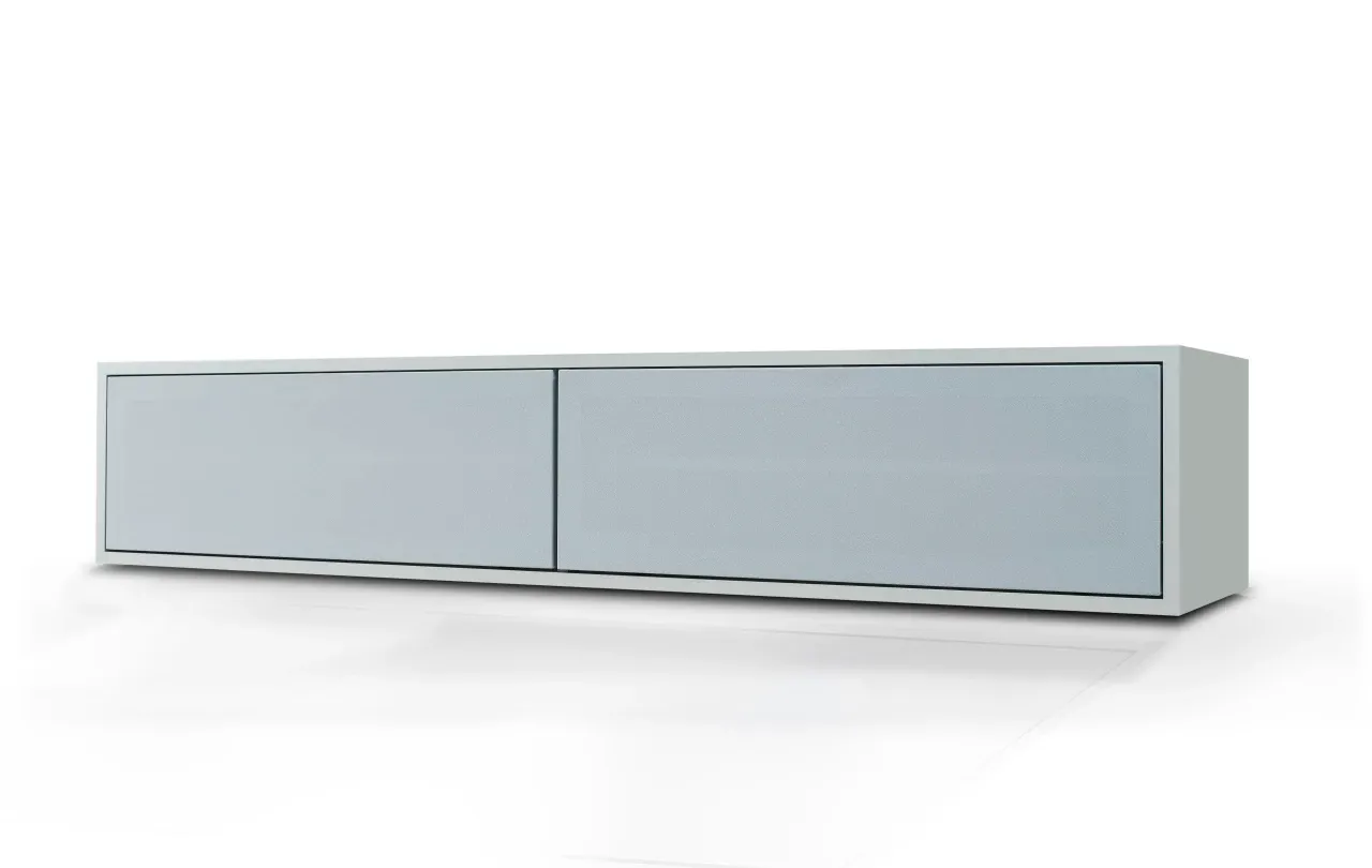 Szafka RTV GŁOŚNIKOWA II wykonana jest z płyty MDF lakierowanej najlepszymi włoskimi lakierami, dostępnej w wykończeniu matowym lub wysokim połysku. Dzięki temu mebel jest odporny na uszkodzenia, łatwy w utrzymaniu czystości i prezentuje się wyjątkowo elegancko. Fronty wykonane z tkaniny głośnikowej dostępne są w czterech starannie dobranych kolorach (biały, jasnoszary, grafitowy, czarny), które można dopasować do indywidualnej aranżacji wnętrza.