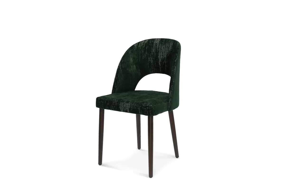 Krzesło Alora – klasyka, komfort i ponadczasowy design. Szerokie, kubełkowe oparcie i tapicerowane siedzisko zapewniają wygodę na co dzień, a solidny stelaż z litego drewna dodaje elegancji każdemu wnętrzu – od domowej jadalni po stylowe bistro.