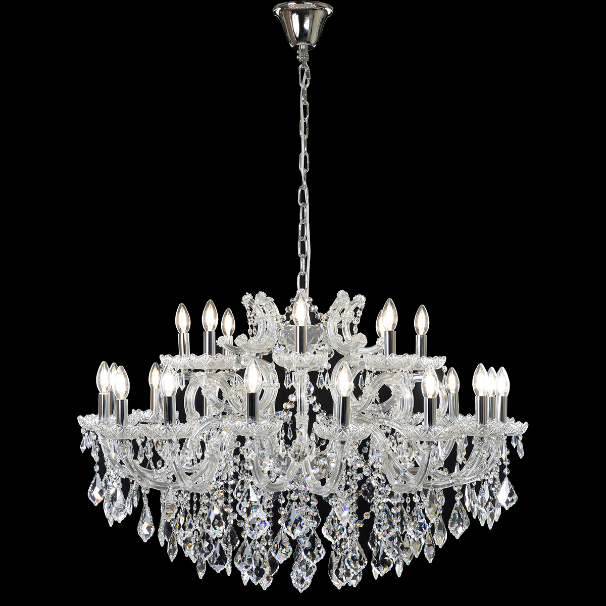 Wiszący żyrandol kryształowy, ponadczasowy model z kolekcji Maria Teresa z 24 punktami świetlnymi. Prawdziwa biżuteria wnętrza i doskonałe uzupełnienie klasycznych wnętrz.