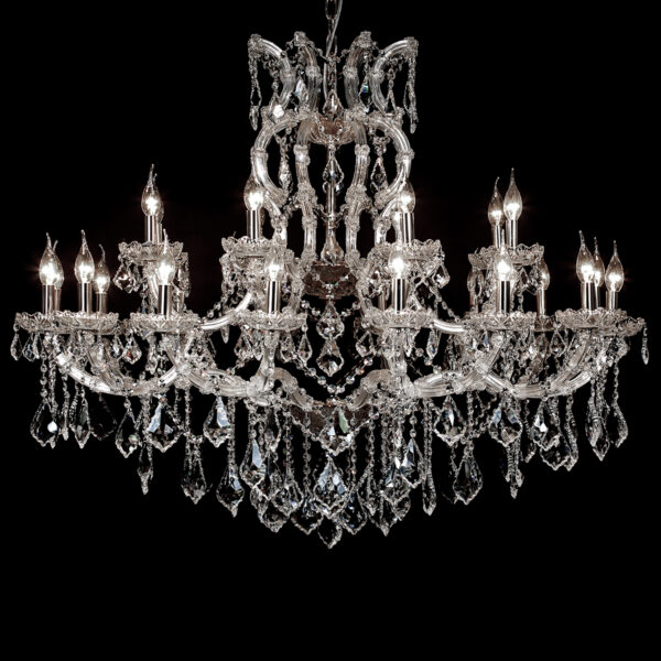 Klasyczne pałacowe żyrandole kryształowe z kolekcji Maria Teresa to doskonała propozycja dla miłośników tradycyjnych, eleganckich wnętrz. Historyczny styl w przepięknej formie, która nadając niebywałego blasku, podkreśli wyjątkowy charakter pomieszczenia. Kolekcja Maria Teresa to czarujące żyrandole wiszące, lampy stojące oraz pasujące do nich kinkiety. Żyrandole Maria Teresa produkowane są w różnych rozmiarach, z różną liczbą punktów świetlnych oraz w różnych wersjach kolorystycznych – tak, aby móc swobodnie dopasować je do każdej, nawet najbardziej wymagającej przestrzeni.
