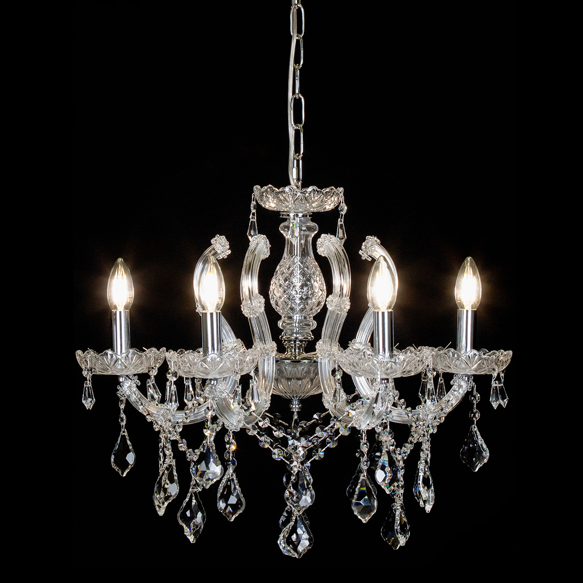 Ponadczasowy model Maria Teresa tym razem w chromowanej galwanizacji i 6 punktami świetlnymi. Rozmiar ten doskonale sprawdza się w oświetleniu mniejszych przestrzeni. Klasyczna lampa wisząca stanowi zarówno perfekcyjne dopełnienie tradycyjny, jak i elegancki dodatek do współczesnych, luksusowych aranżacji. Żyrandol wykonany jest ręcznie w naszej pracowni, z dbałością o każdy, nawet najdrobniejszy detal. Kryształy są pojedynczo weryfikowane pod kątem jakości, dzięki czemu Ty otrzymujesz gotowy produkt Twoich marzeń.