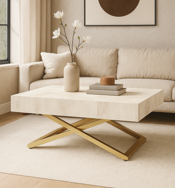 Ławostół SANNA X złoty / miedziany– nowoczesny stolik kawowy z funkcją podnoszenia i rozkładania | Megi’s Concept Premium